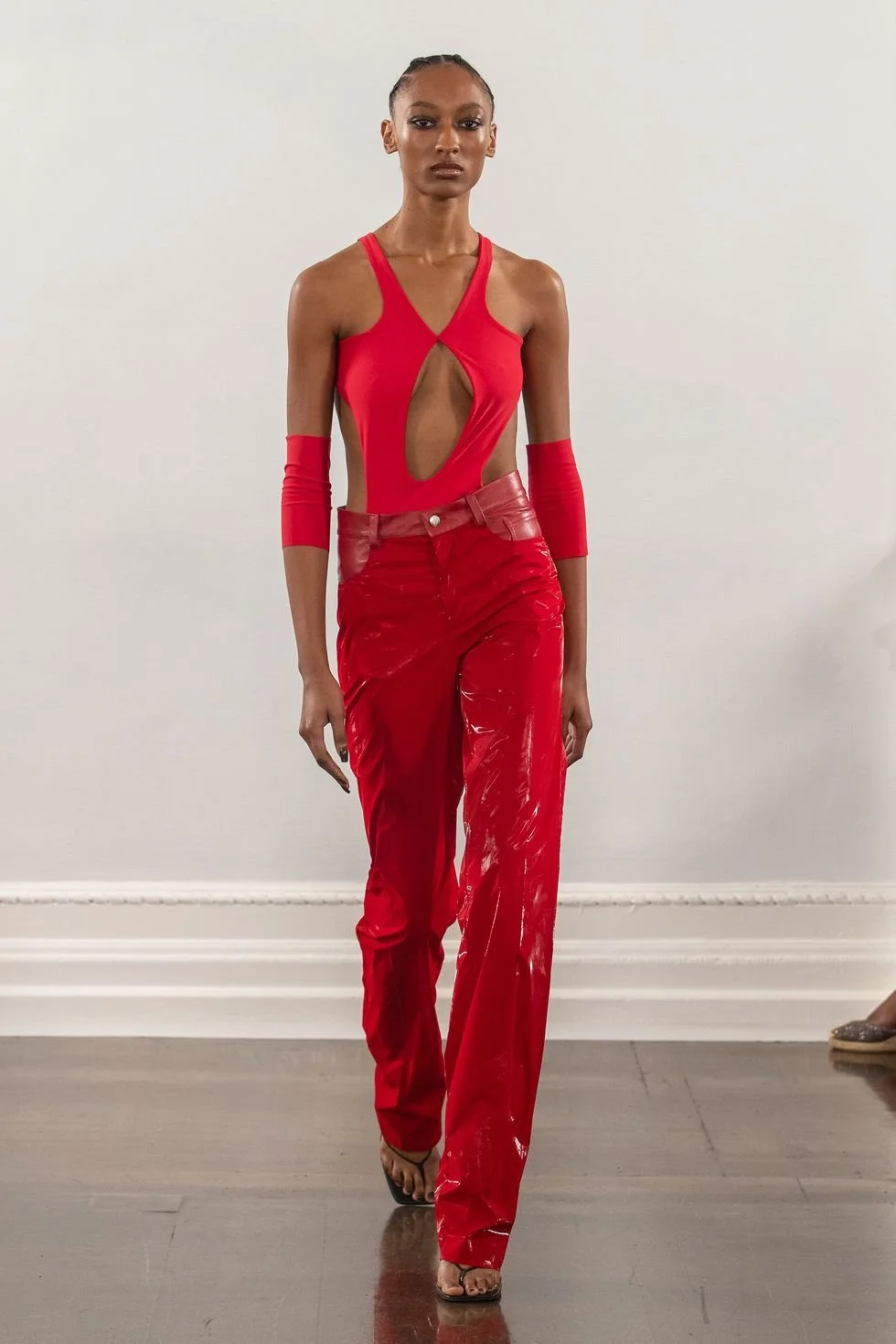 A bodysuit is something that is intended to accessorize a statement piece, not be the statement piece itself. What makes Zhou an exciting talent to watch is her ability to flip the nature of a piece on its head.