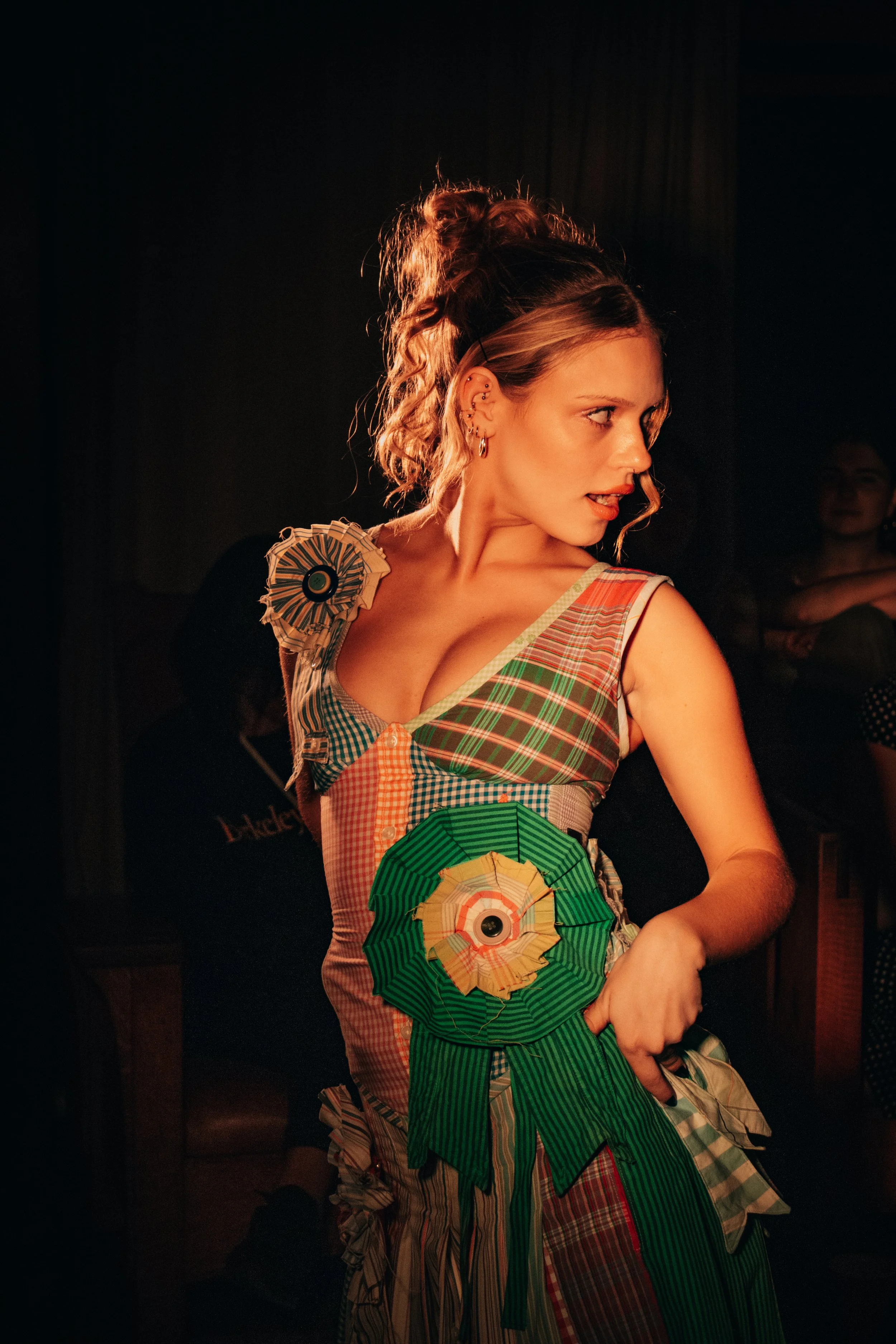 Before coming to the runway, I knew I had to talk to the designer of all designers, Brooke Blacklidge. Not only was she the mind behind the madness—organizing the venue, models, and designers—she showed off a piece of her own. To see her designs is to love her designs, and this runway was no different. Her piece, a mosaic of gingham and plaid button-downs, was reconstructed into what she referred to as a 'Chopova Lowena-esque' dress.