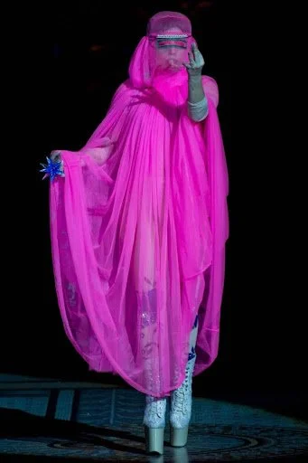 AND THEN THERE’S AURA OR UNRELEASED AS BURQA (THE BETTER VERSION IMO), THE START OF THE ARTPOP ERA! THIS IS WHERE THE TITLE OF THIS ESSAY COMES FROM, “SHE WEAR BURQA FOR FASHION, IT’S NOT A STATEMENT AS MUCH AS A MOVE OF PASSION.” BURQA IS NOT JUST FASHION. IT IS RELIGION, POLITICS, IDENTITY, CONTROVERSY, AND FOR MANY WOMEN, SOMETHING THEY CAN OR NOT TAKE OFF, WILLINGLY OR UNWILLINGLY. (SIDE BAR, IT IS INTERESTING THAT THE START OF THIS PROVOCATIVE ERA BEGAN WITH AN INTEREST IN SWANA) GAGA RECONTEXUALIZES THE BURQA AS AN AESTHETIC CHOICE, SOMETHING EMOTIONAL, SEXUAL, BUT OVERALL AND ALWAYS, TO HER, ARTISTIC VISION. IN 2010 FRANCE MADE IT ILLEGAL TO WEAR ANY FULL-FACE VEILS IN ALL PUBLIC SPACES AND IT IS STILL UP TO THIS DAY IN HER BURQA, GAGA CAN PERFORM IN IT, AND THEN REMOVE IT, WITHOUT CONSEQUENCE. AND SHE IS NOT ALONE IN THIS!!!....